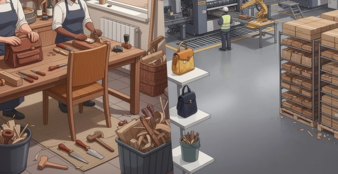 La question des déchets constitue un enjeu central dans la comparaison entre fabrication artisanale et industrielle. Dans un atelier artisanal, les volumes de déchets restent généralement limités ; ils sont visibles, concrets, et directement associés au geste de production. Cette proximité incite à trouver des solutions : tri fin, réemploi, partenariats locaux (menuisier fournissant ses copeaux à un éleveur, par exemple) ou participation à des filières de recyclage spécialisées.
